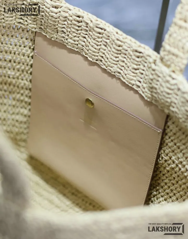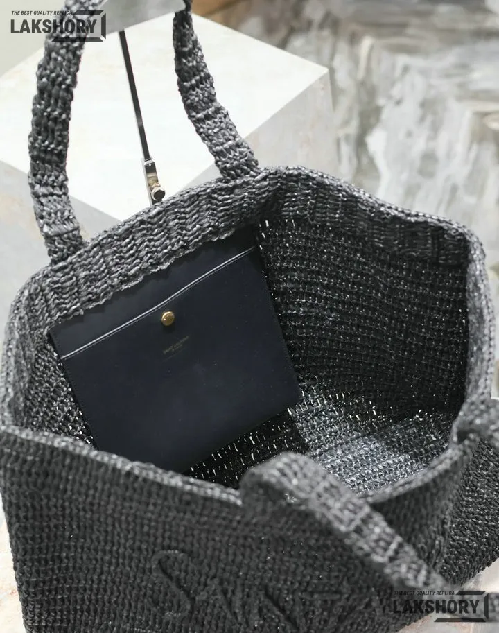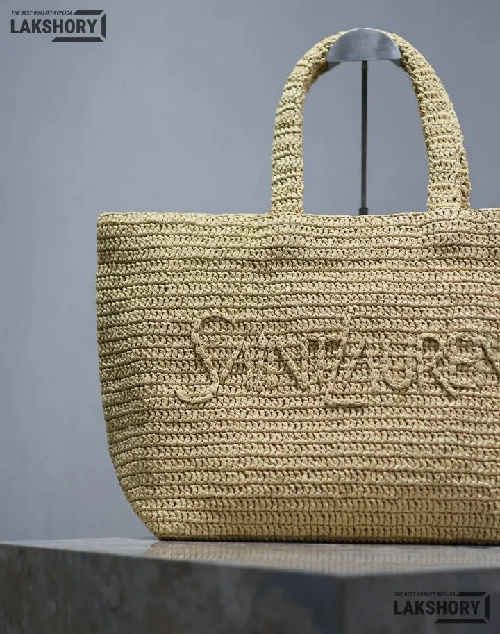 YSL 1:1 Mirror Replica Logo Embossed Raffia Crochet Tote Bag 50CM/19.7IN