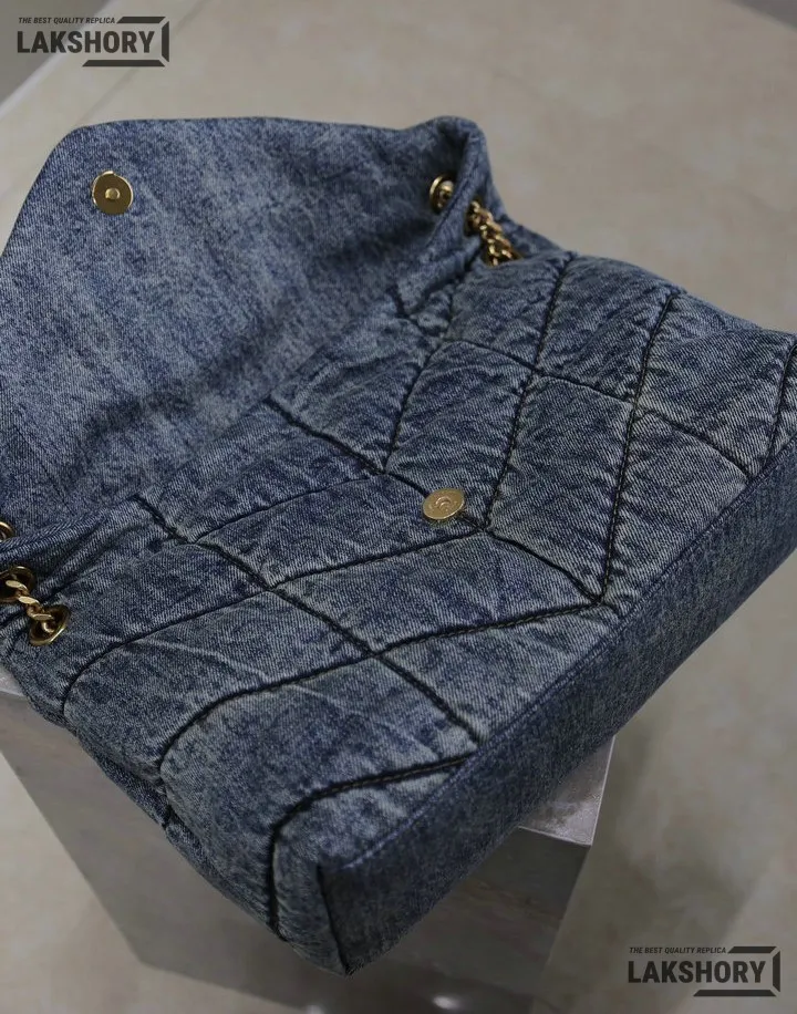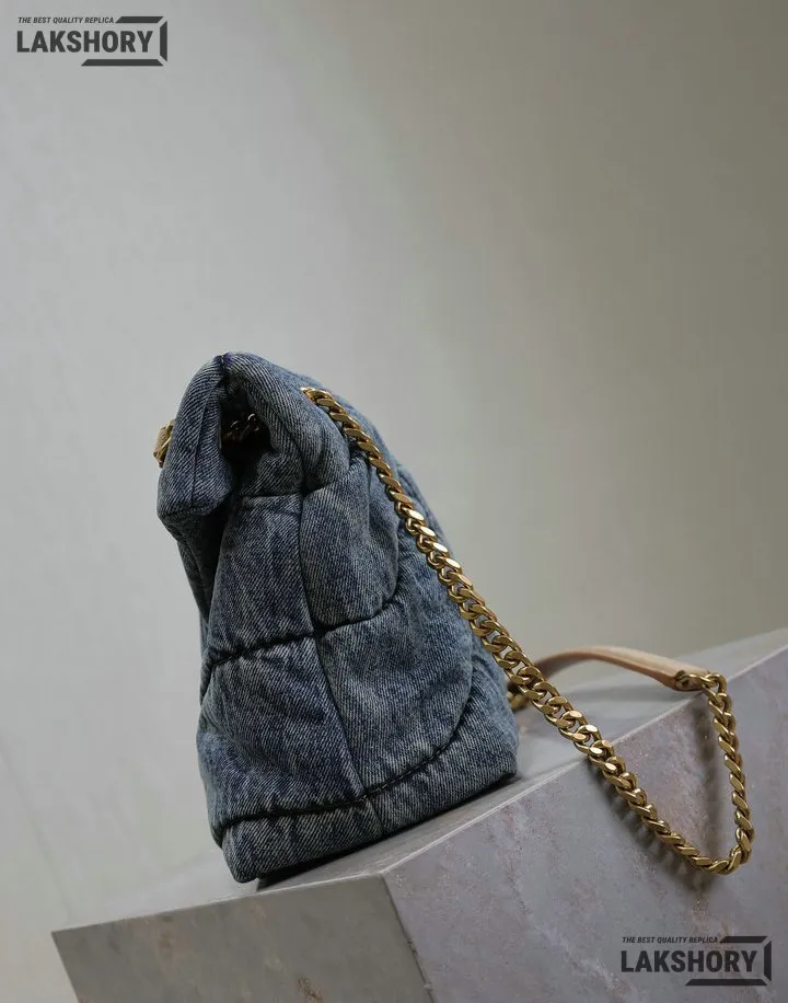 YSL 1:1 Mirror Replica Loulou Puffer Shoulder Bag Denim Blue 35CM/13.8IN