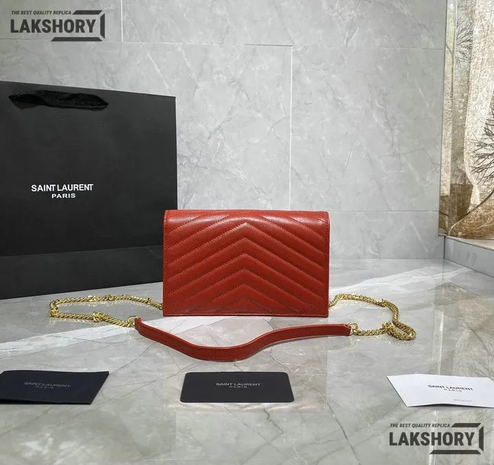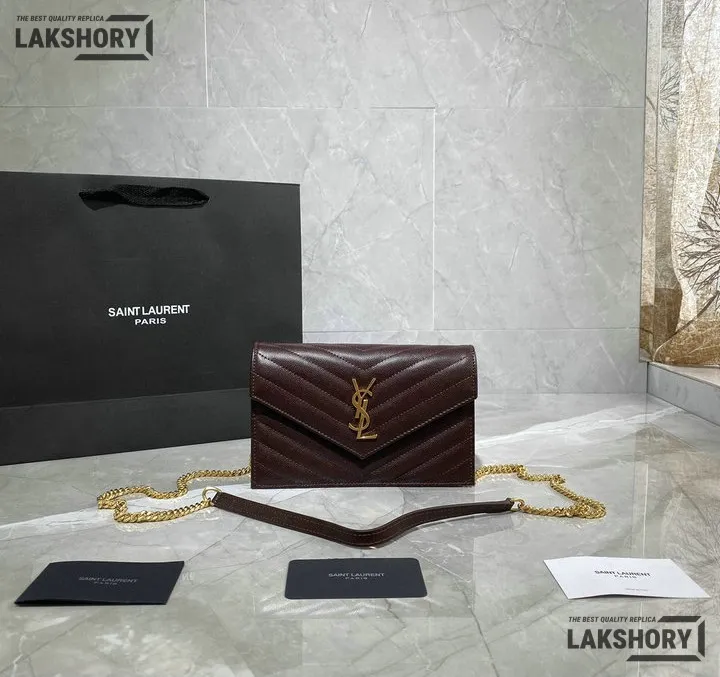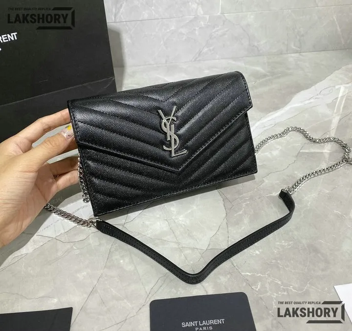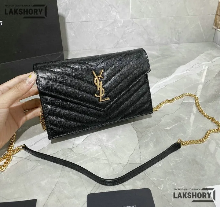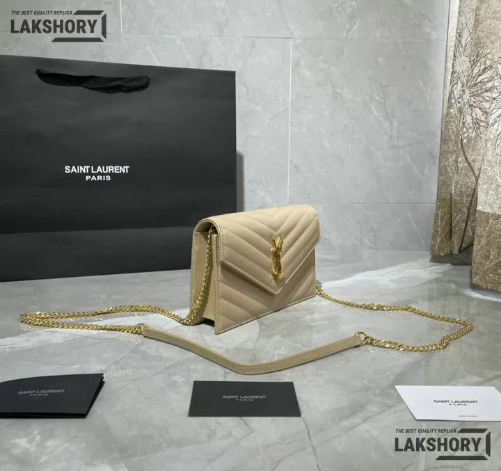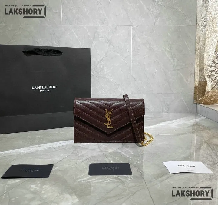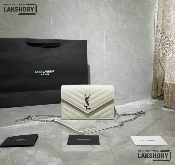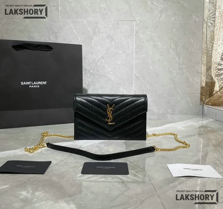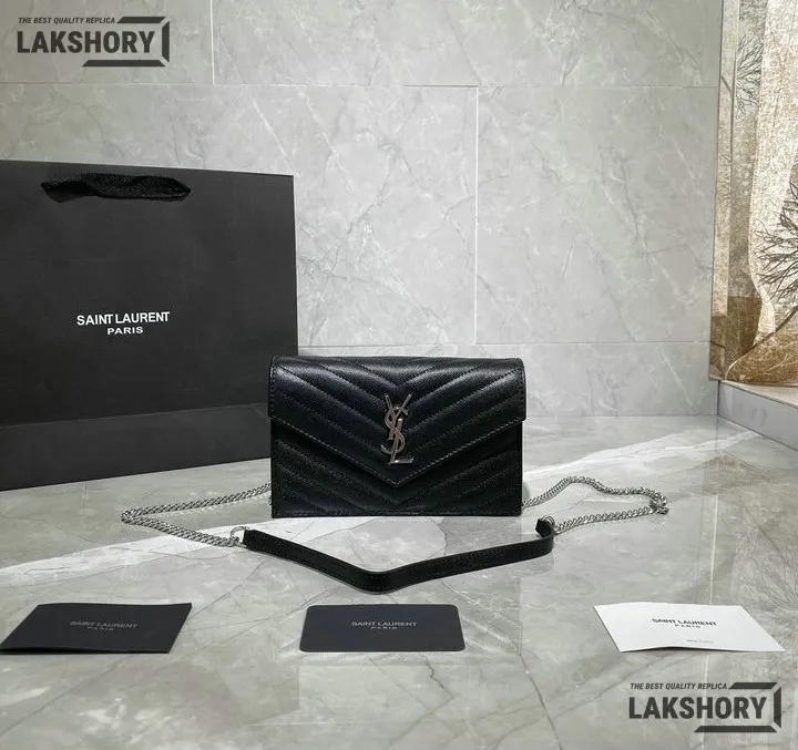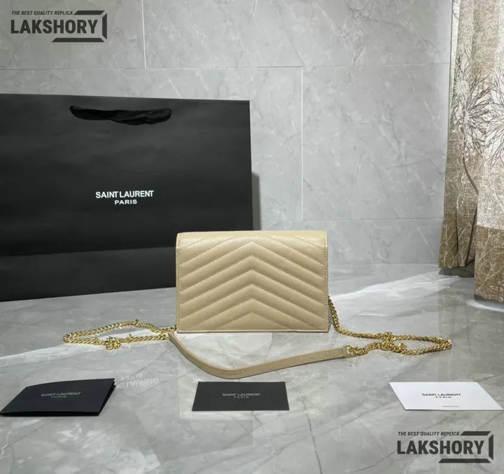 YSL 1:1 Mirror Replica Matelasse Leather Cassandra Wallet on Chain 19CM/7.5IN