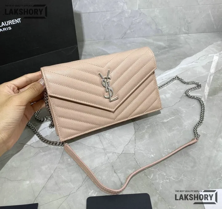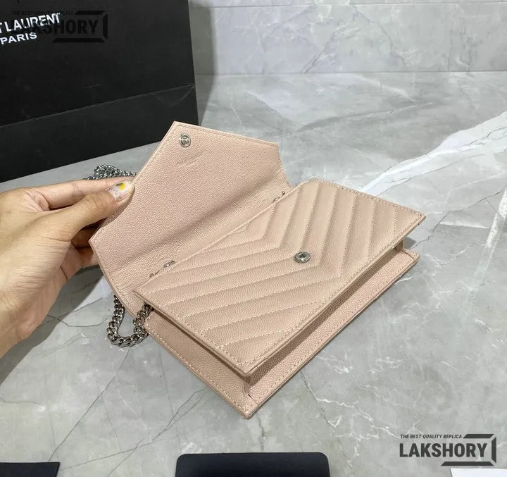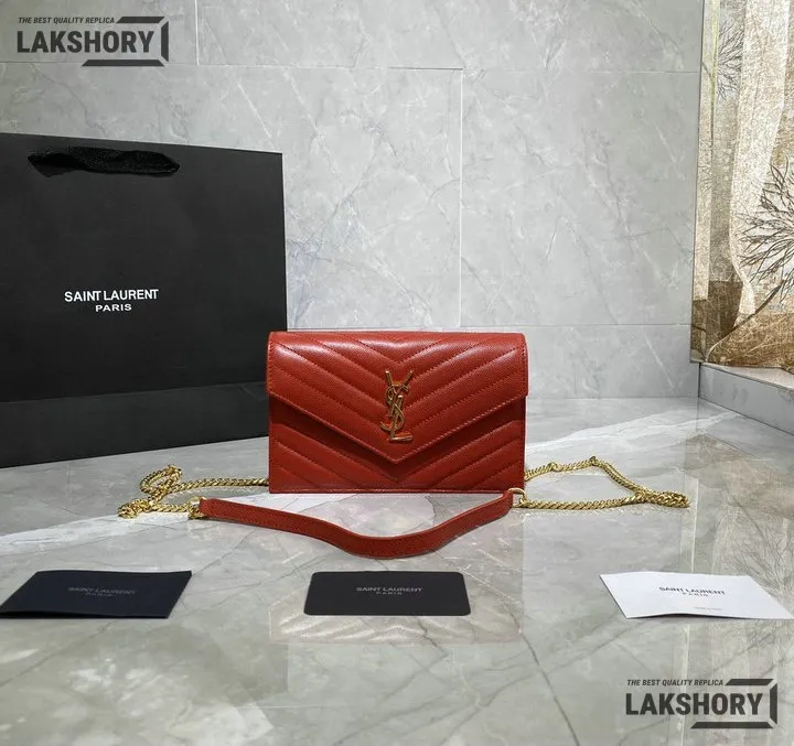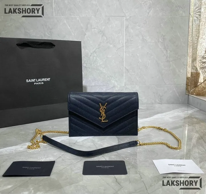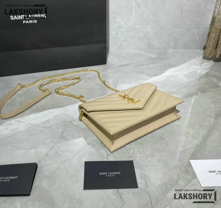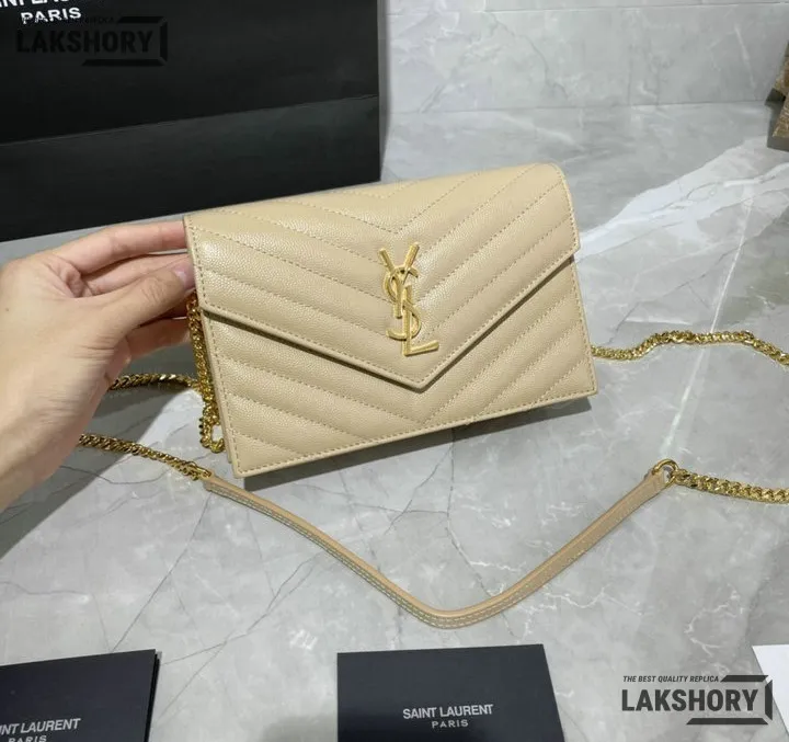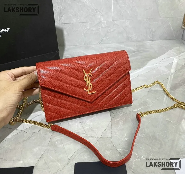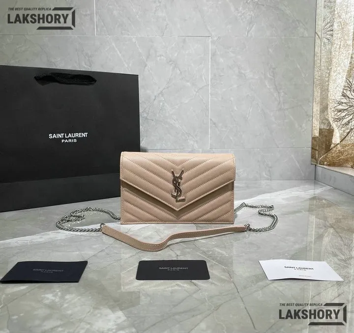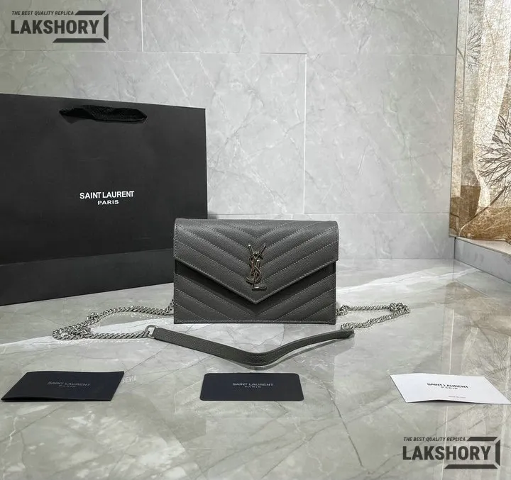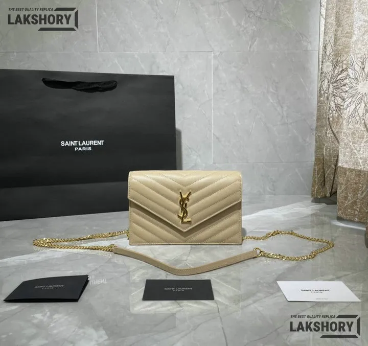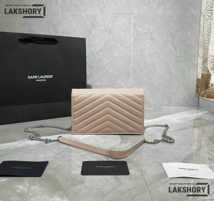 YSL 1:1 Mirror Replica Matelasse Leather Cassandra Wallet on Chain 19CM/7.5IN