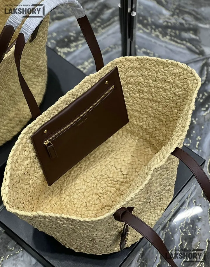 YSL 1:1 Mirror Replica Medium Raffia Panier Shopping Tote Bag 52CM/20.5IN