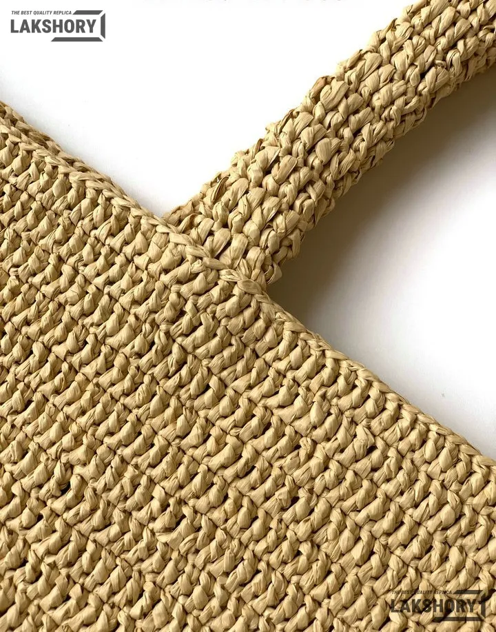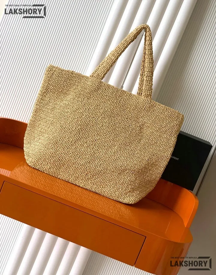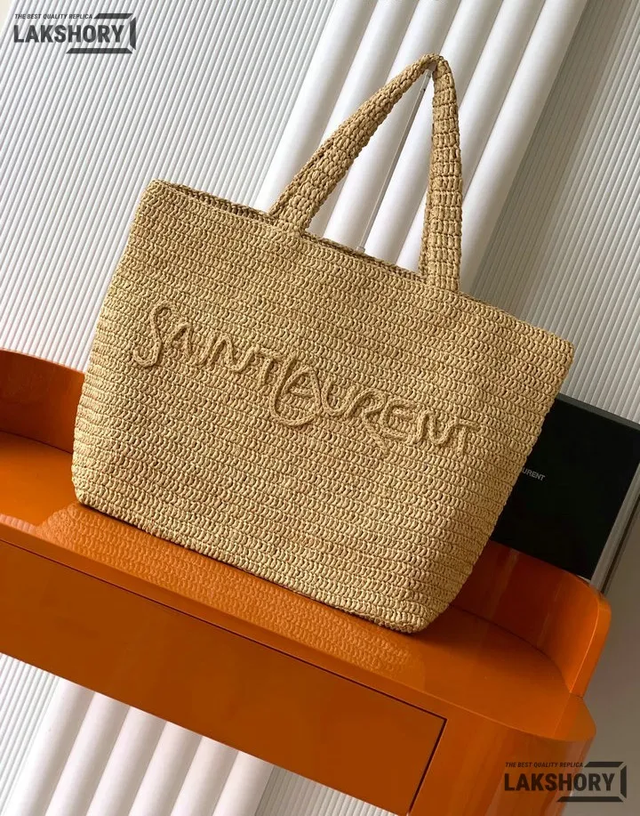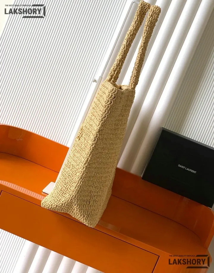 YSL 1:1 Mirror Replica Raffia Blend Logo Tote Bag Beige 43CM/16.9IN
