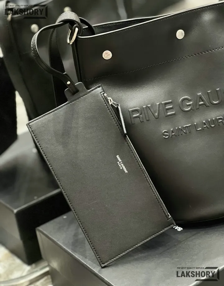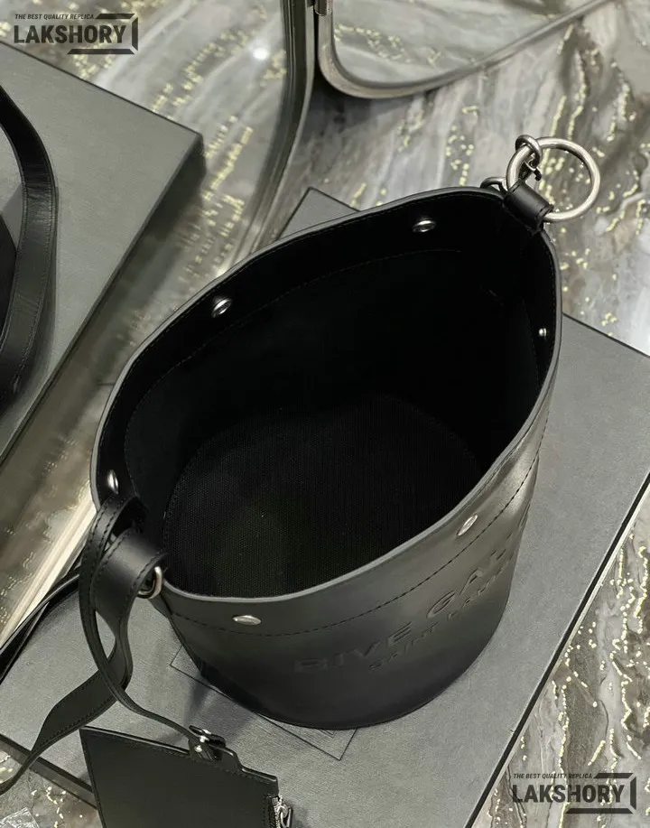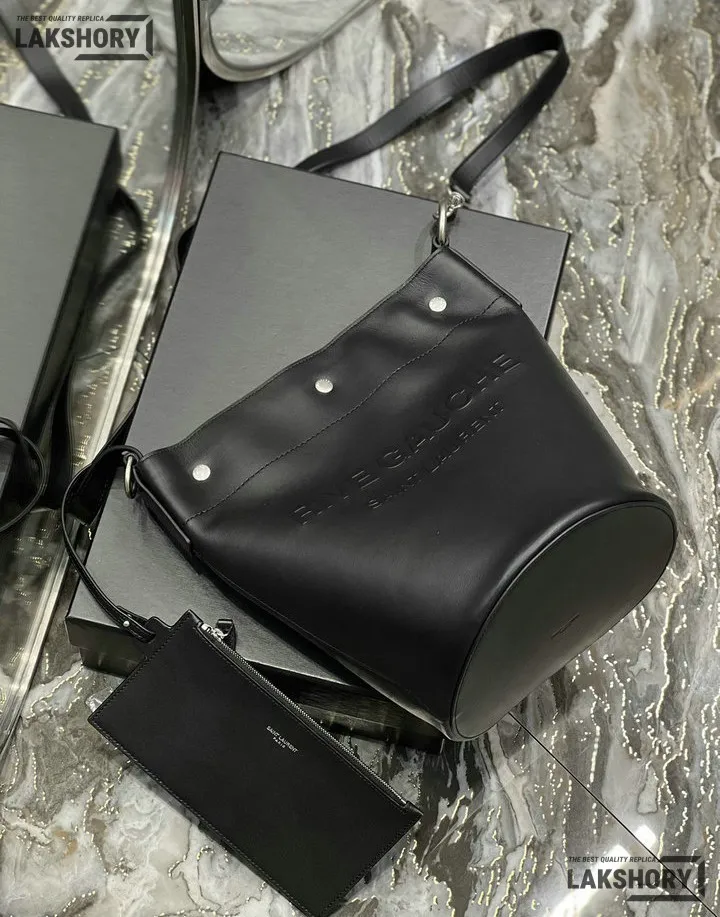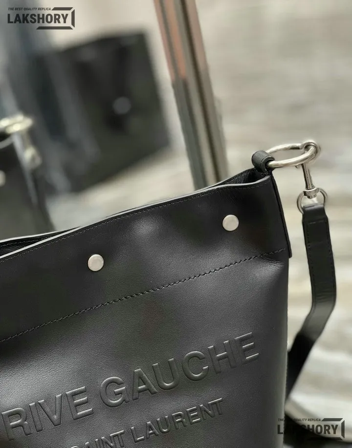 YSL 1:1 Mirror Replica Rive Gauche Debossed Bucket Bag Black 20CM/7.9IN