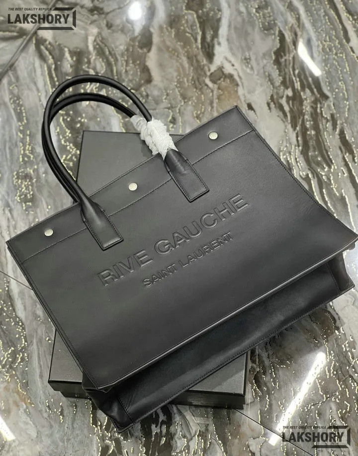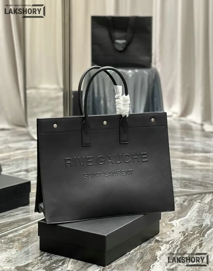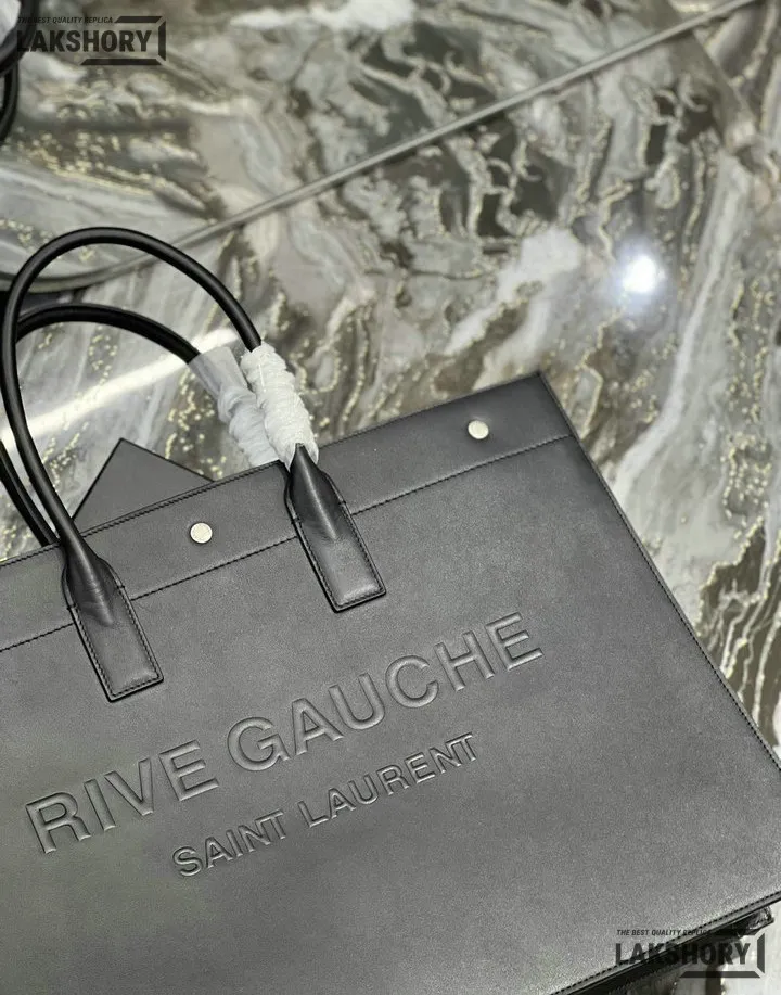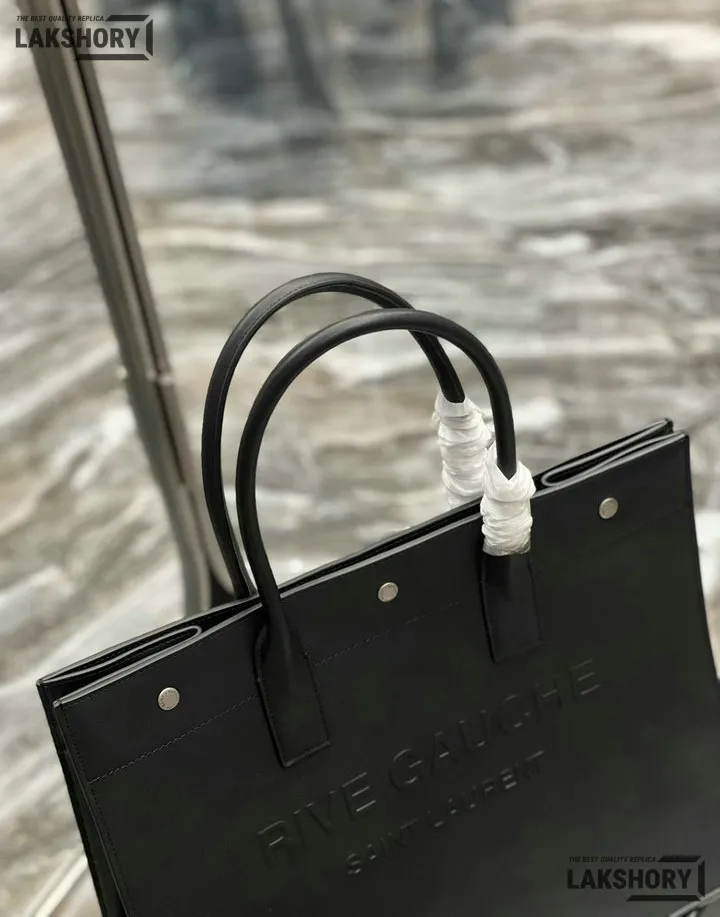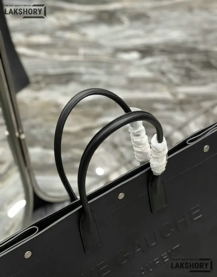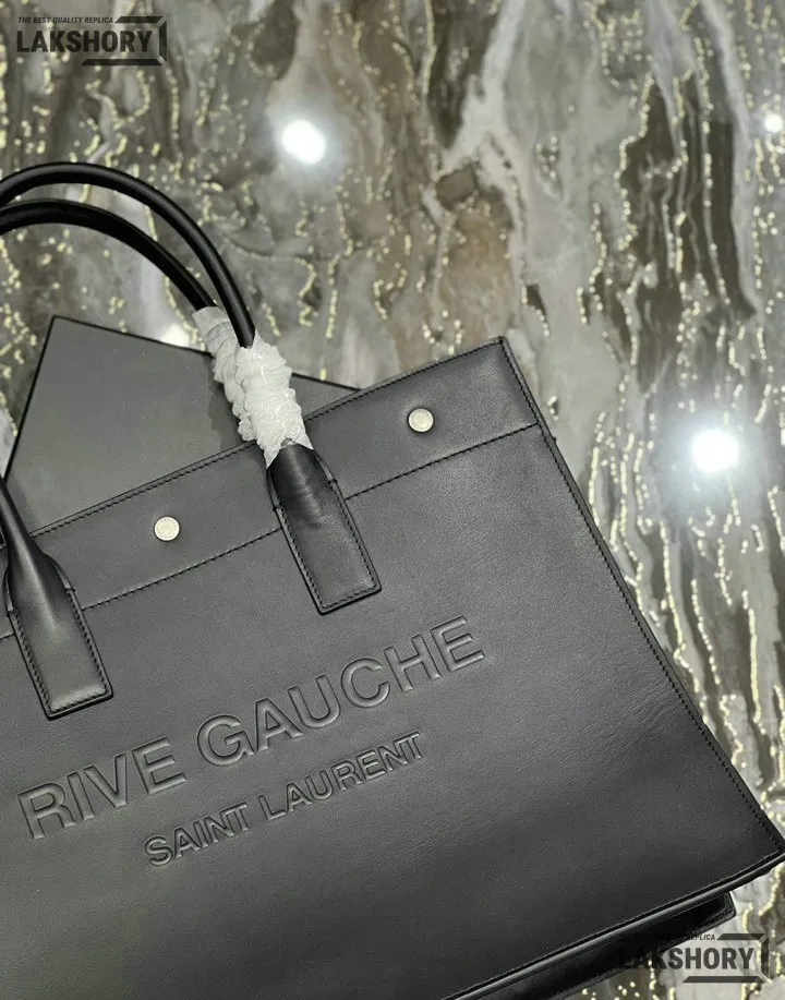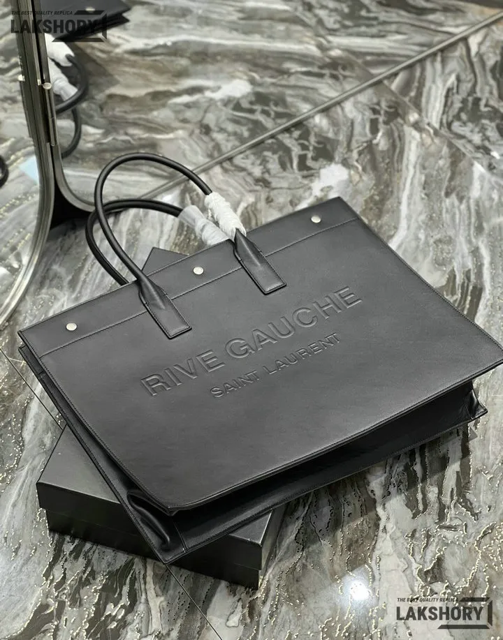 YSL 1:1 Mirror Replica Rive Gauche Smooth Tote Leather Bag Black