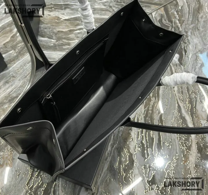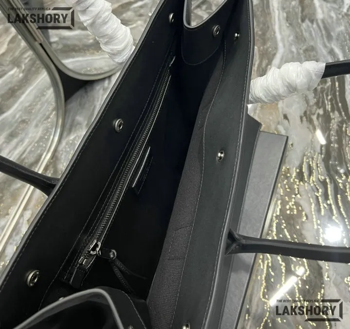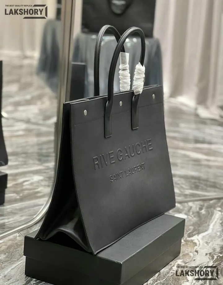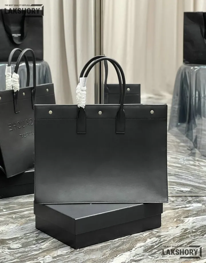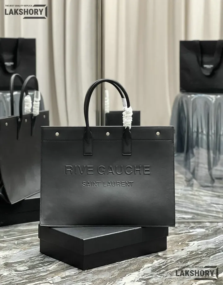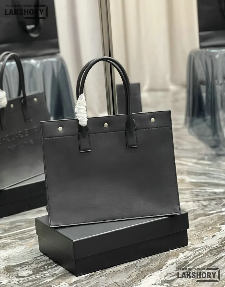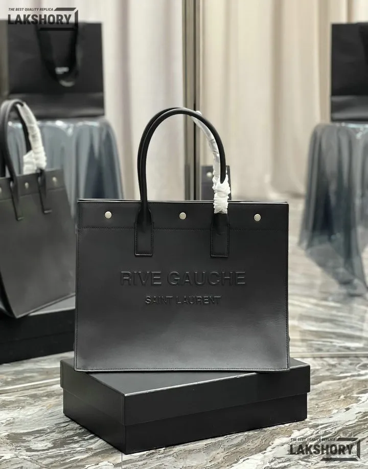 YSL 1:1 Mirror Replica Rive Gauche Smooth Tote Leather Bag Black