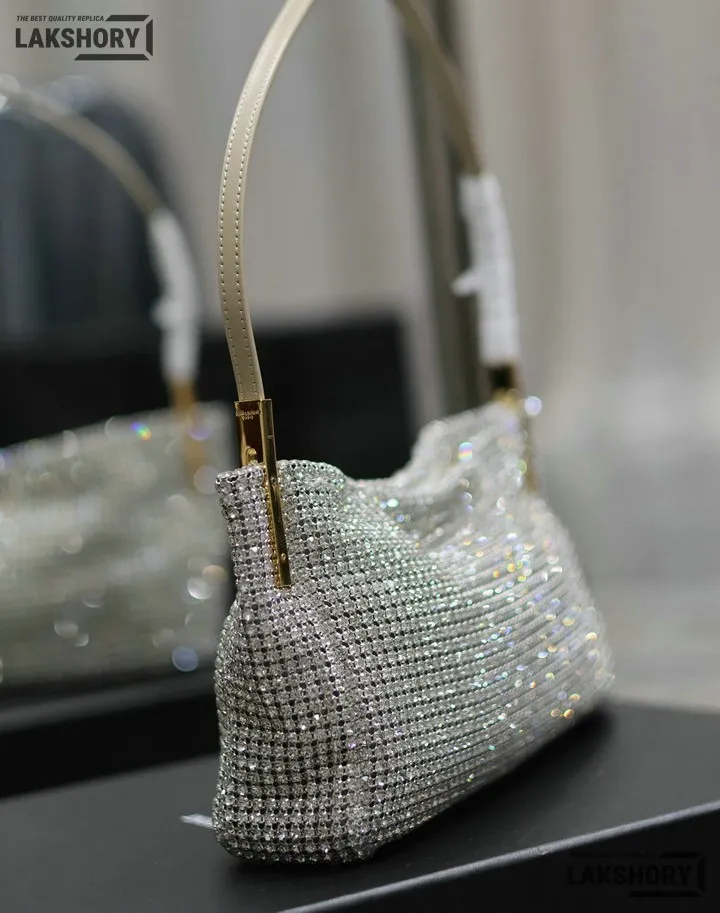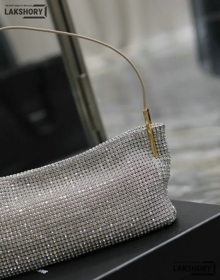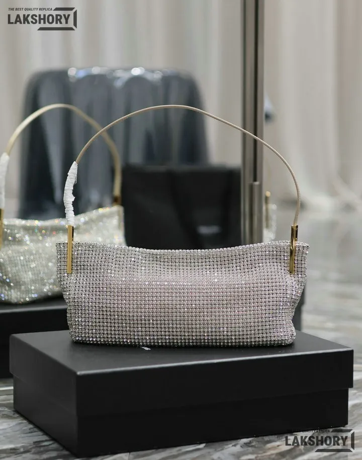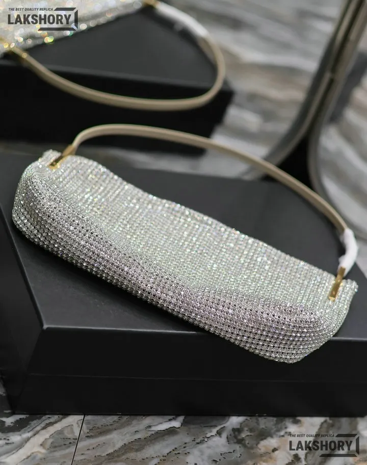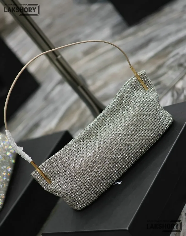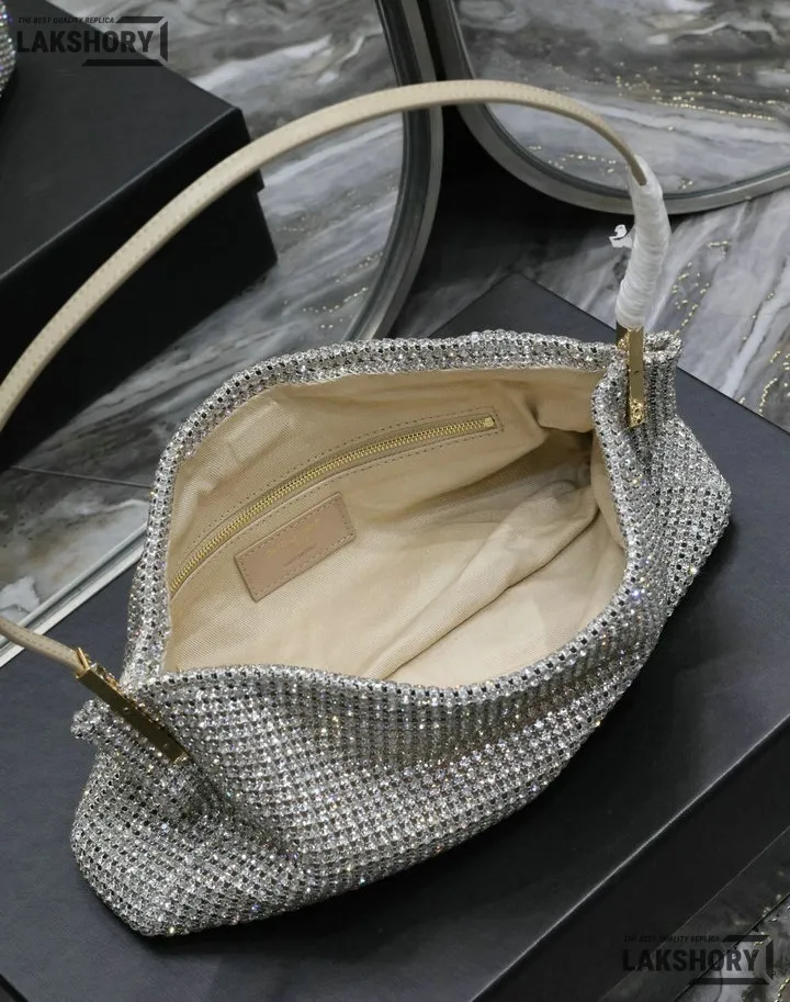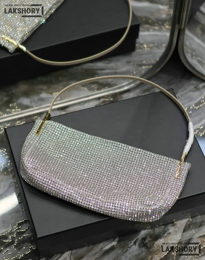 YSL 1:1 Mirror Replica Satin Crystal Rhinestone Suzanne Bag 28CM/11IN
