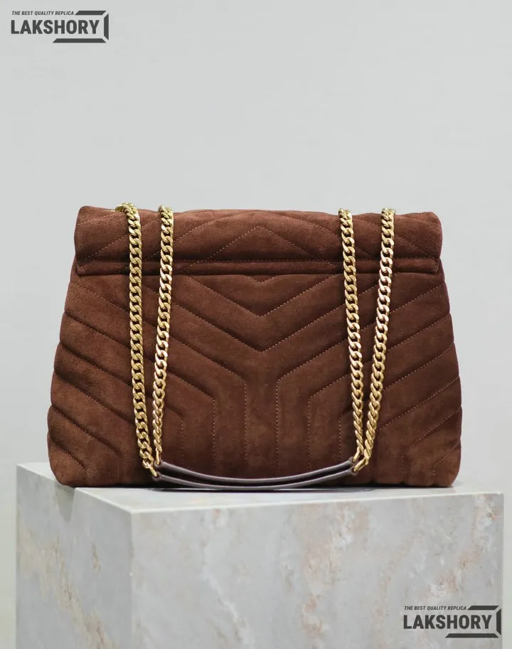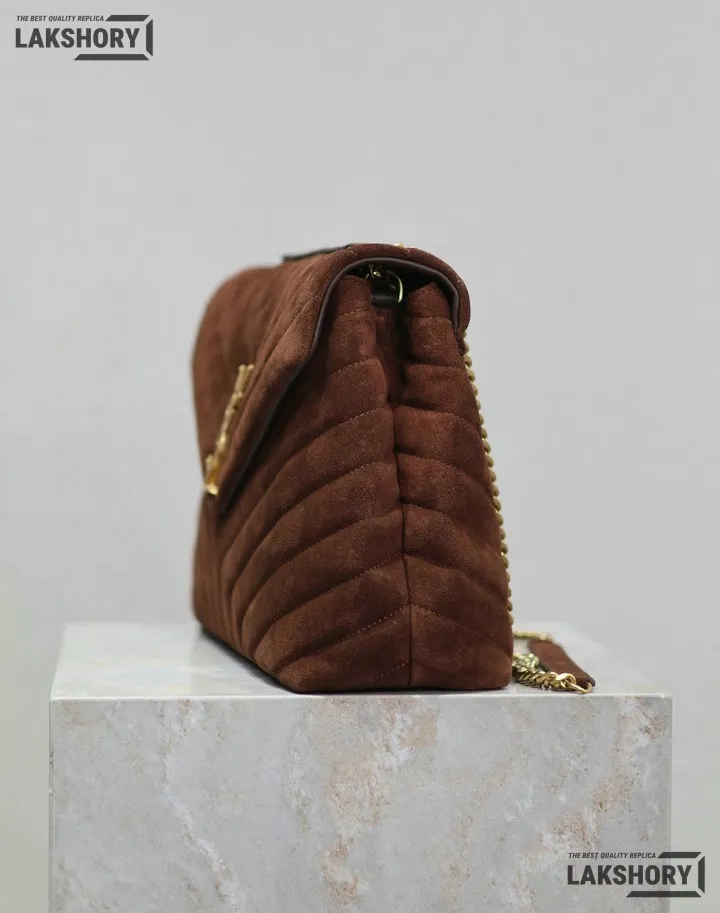YSL 1:1 Mirror Replica Suede Rope Loulou Chain Satchel Brown 32CM/12.6IN