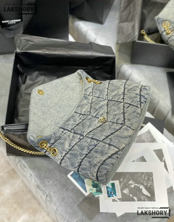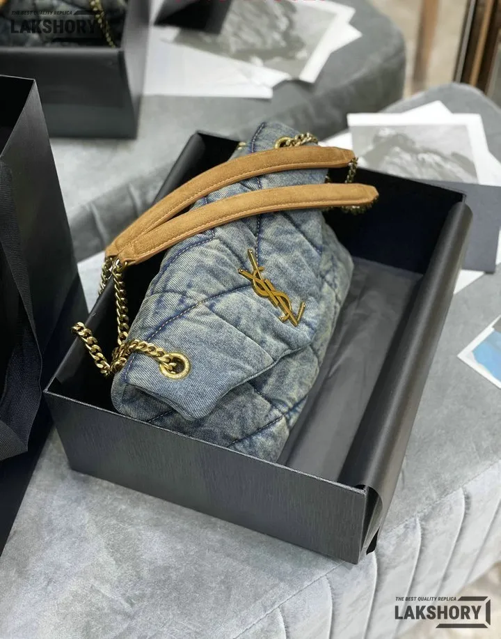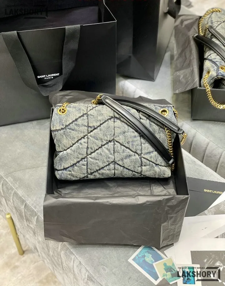 YSL 1:1 Mirror Replica Toy Loulou Puffer Denim Chain Satchel 29CM/11.4IN
