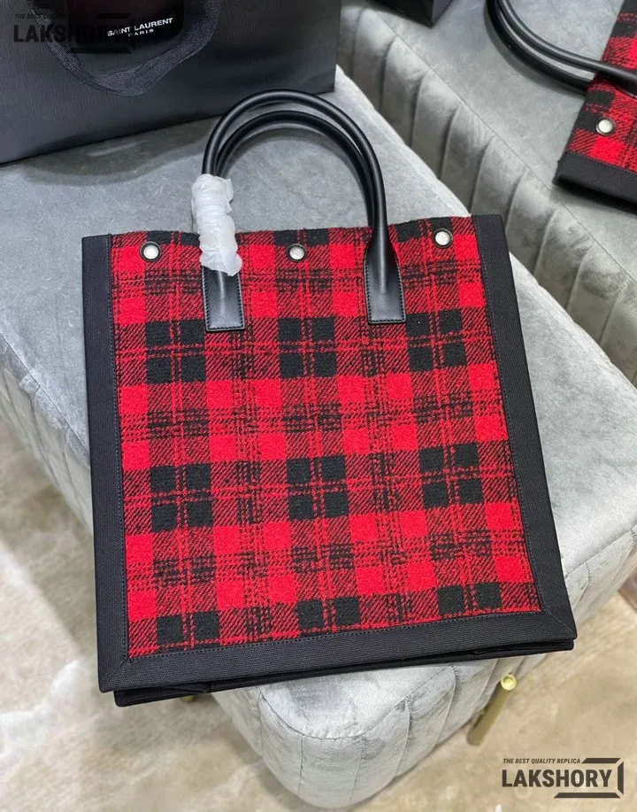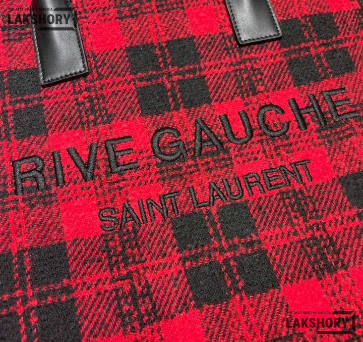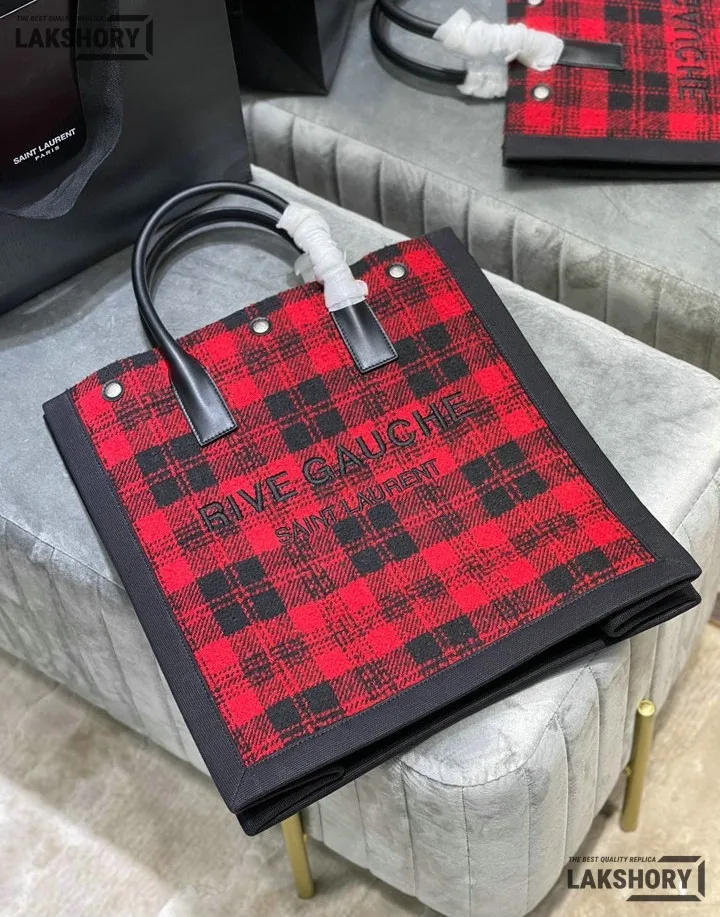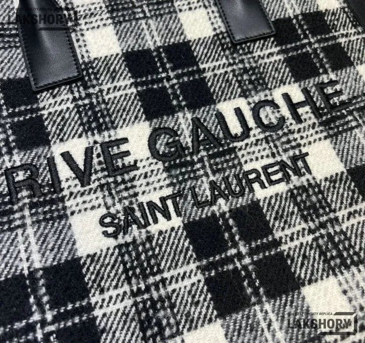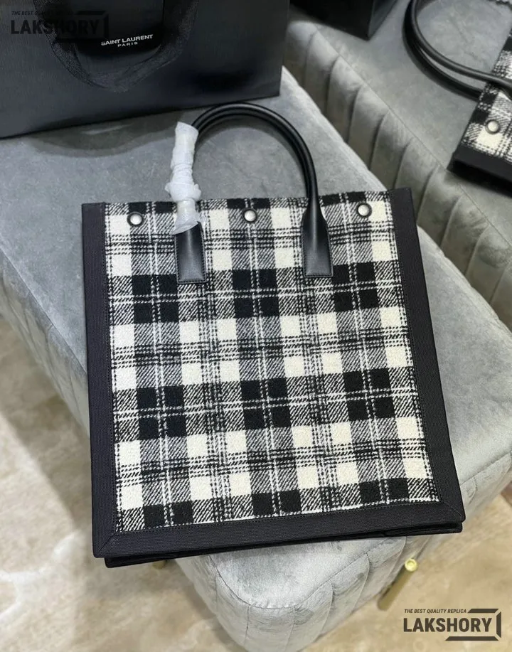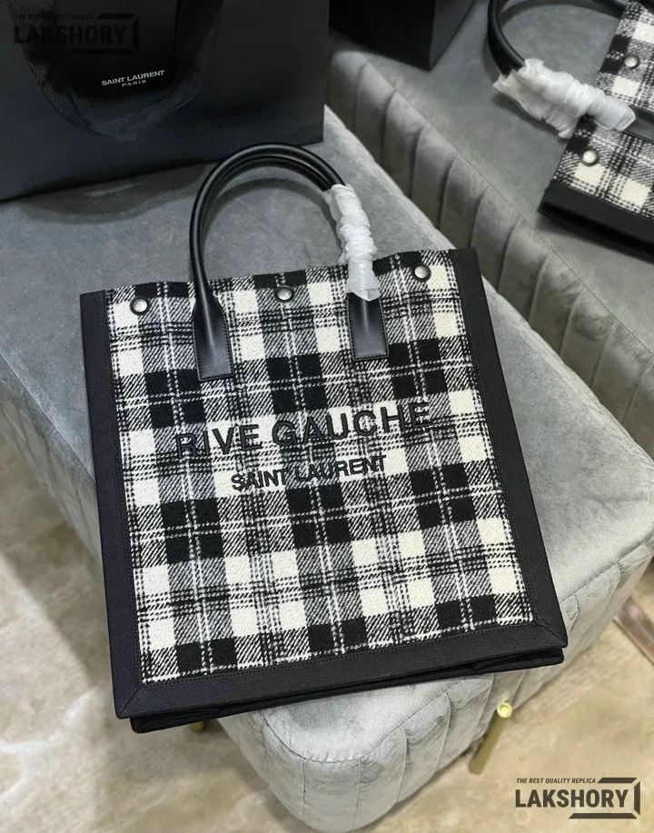 YSL 1:1 Mirror Replica Wool Tartan Rive Gauche Noe Tote Bag 38CM/15.0IN