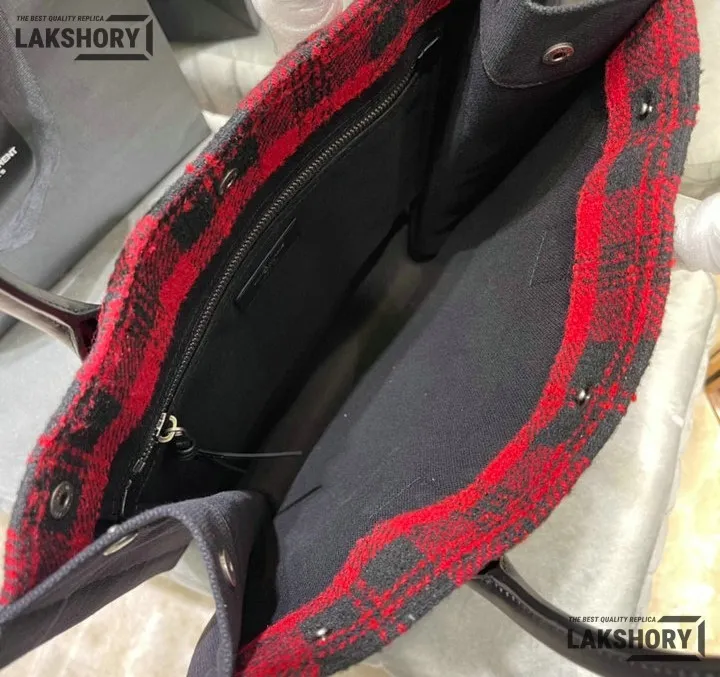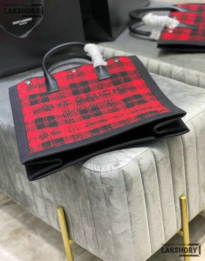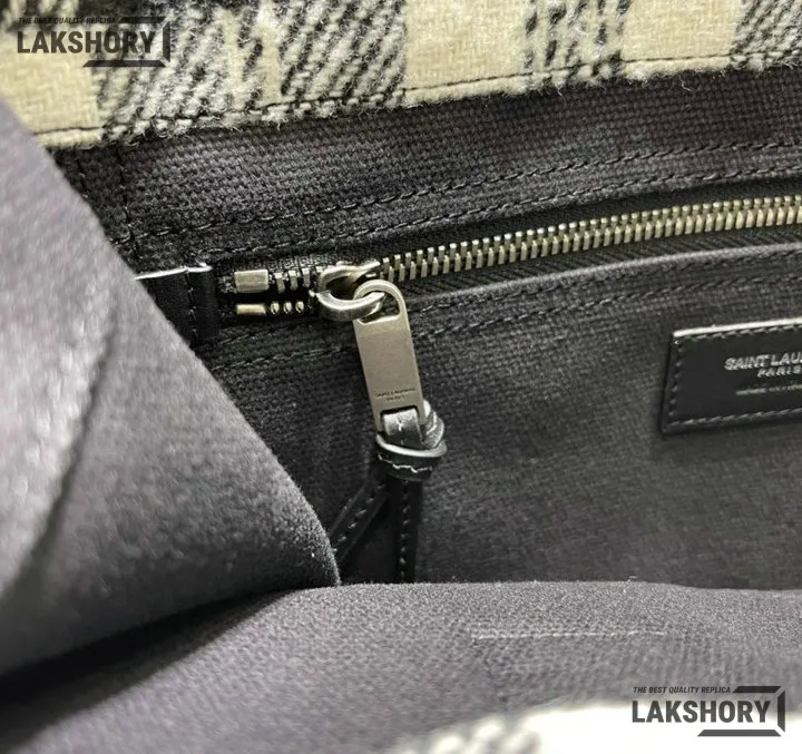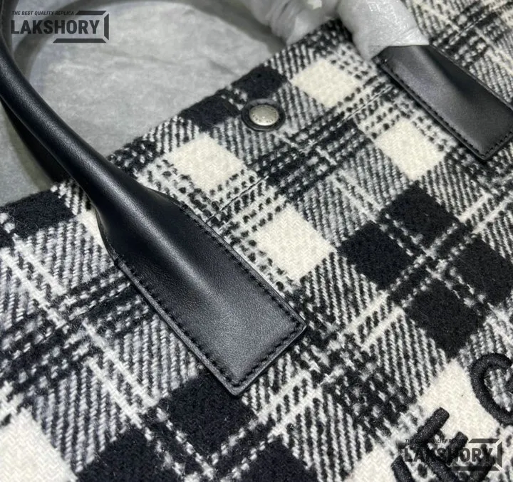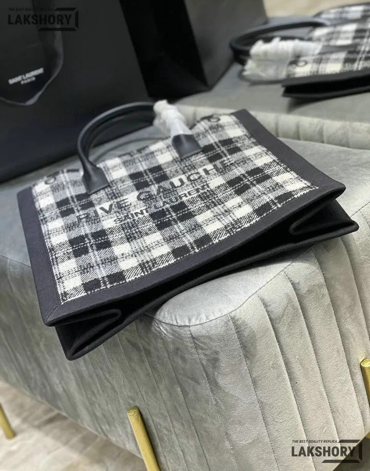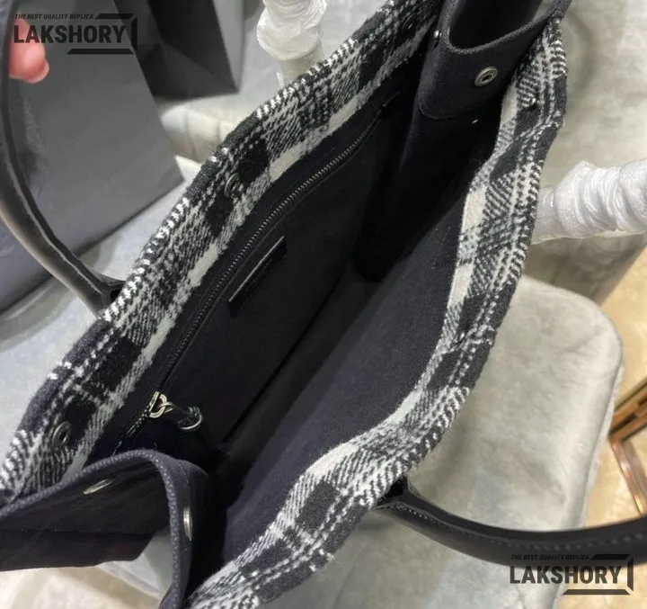YSL 1:1 Mirror Replica Wool Tartan Rive Gauche Noe Tote Bag 38CM/15.0IN