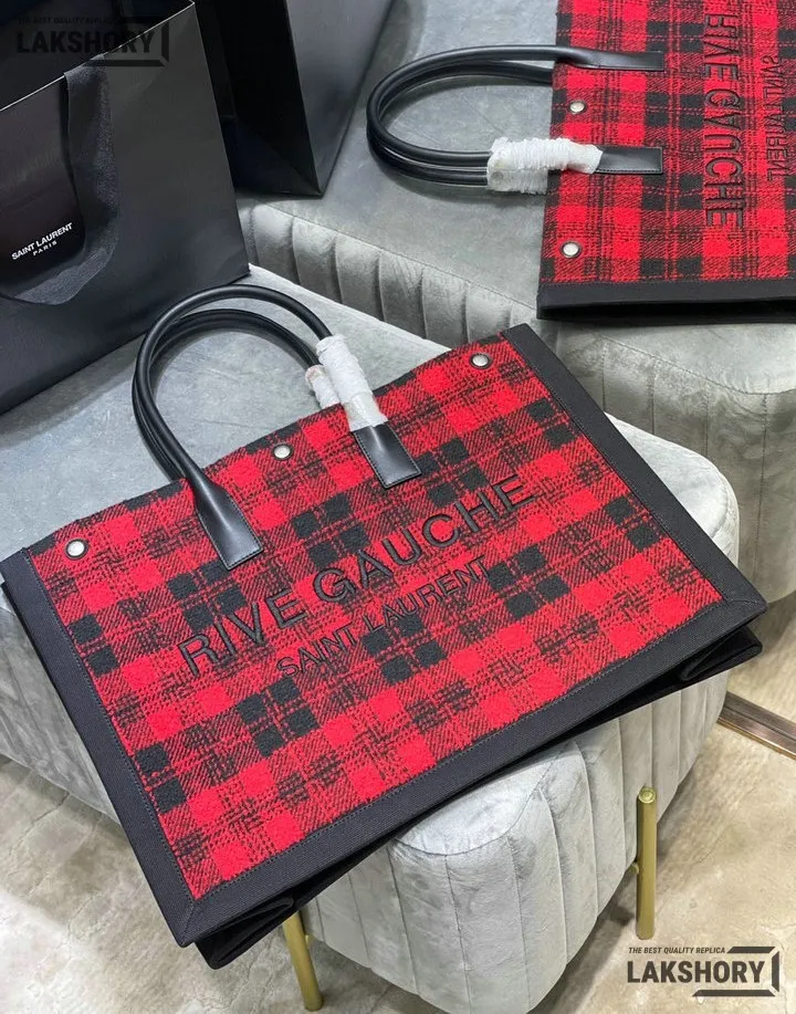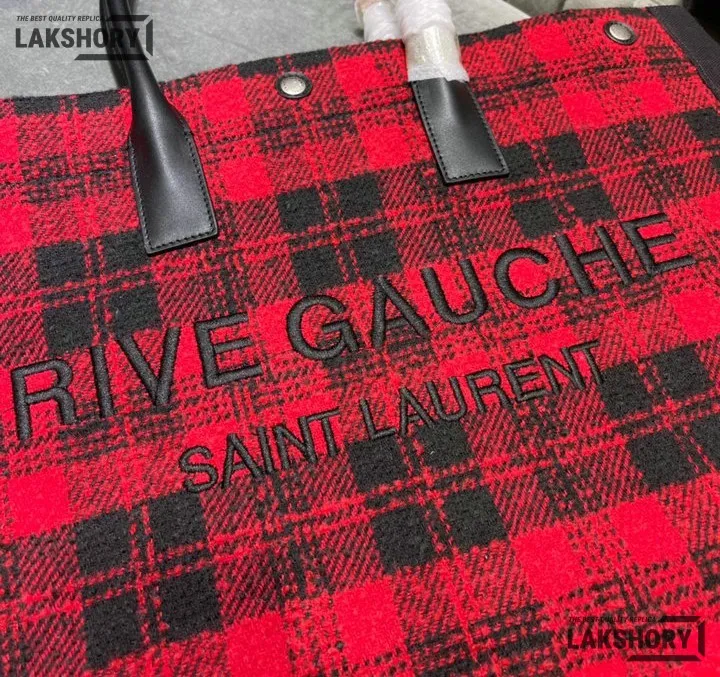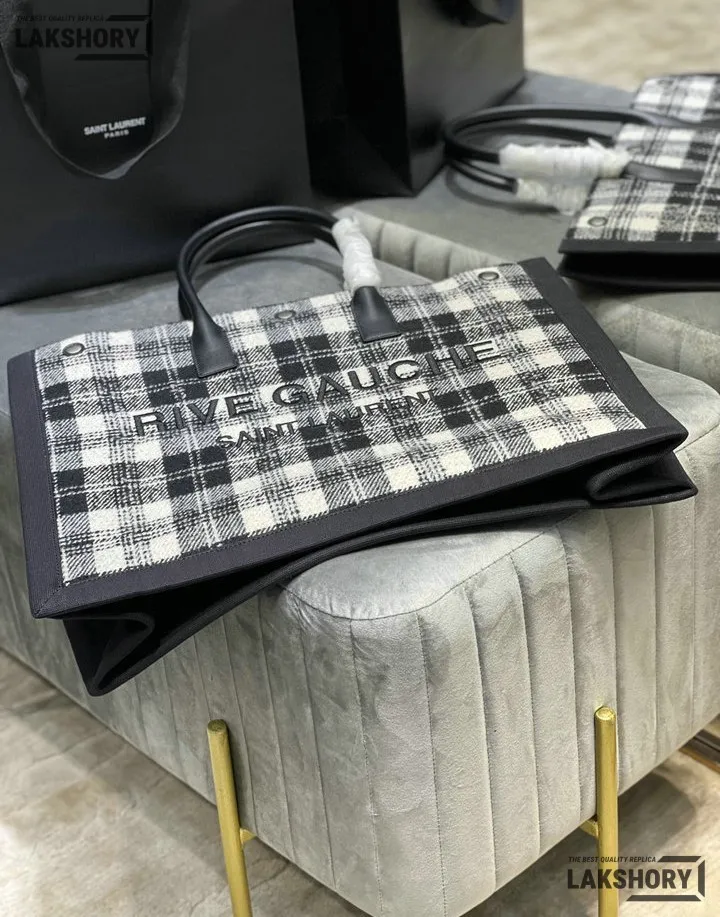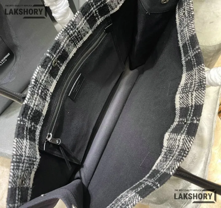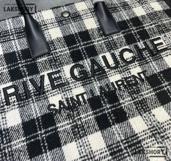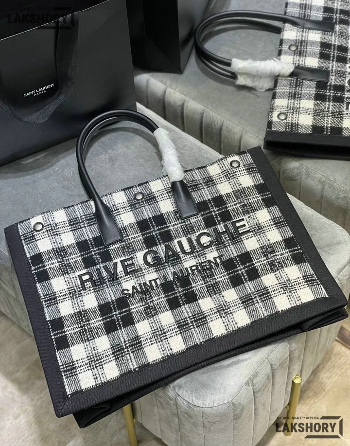 YSL 1:1 Mirror Replica Wool Tartan Rive Gauche Tote Bag 48CM/18.9IN
