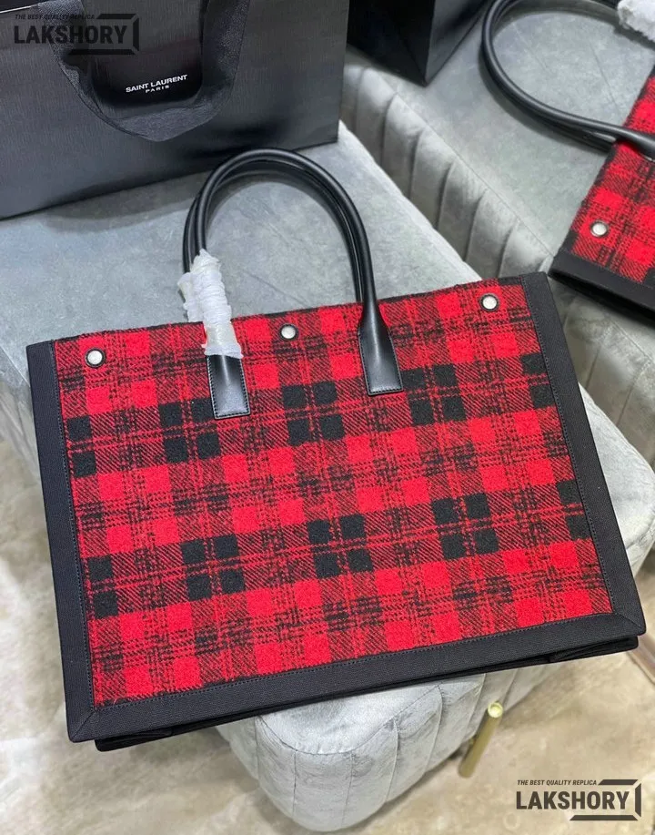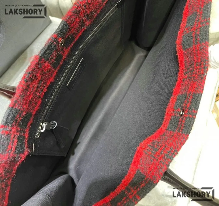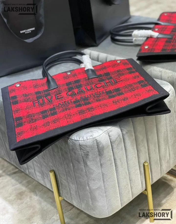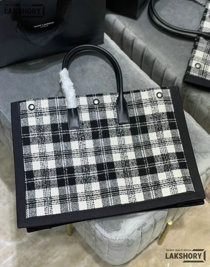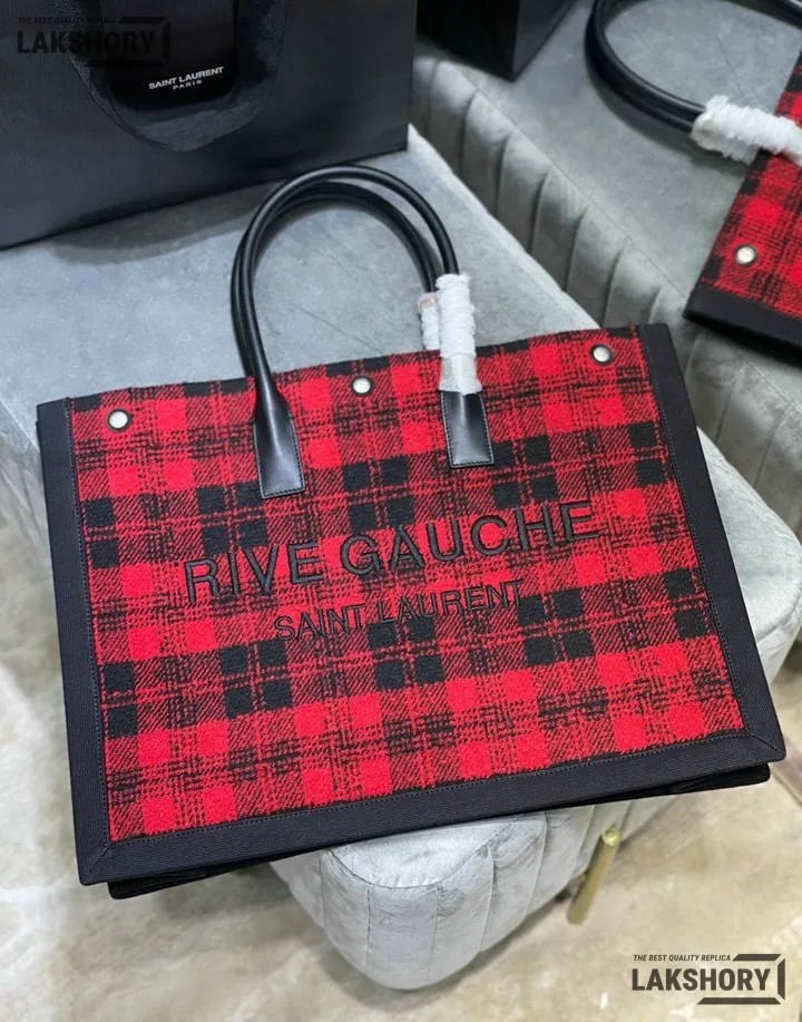 YSL 1:1 Mirror Replica Wool Tartan Rive Gauche Tote Bag 48CM/18.9IN